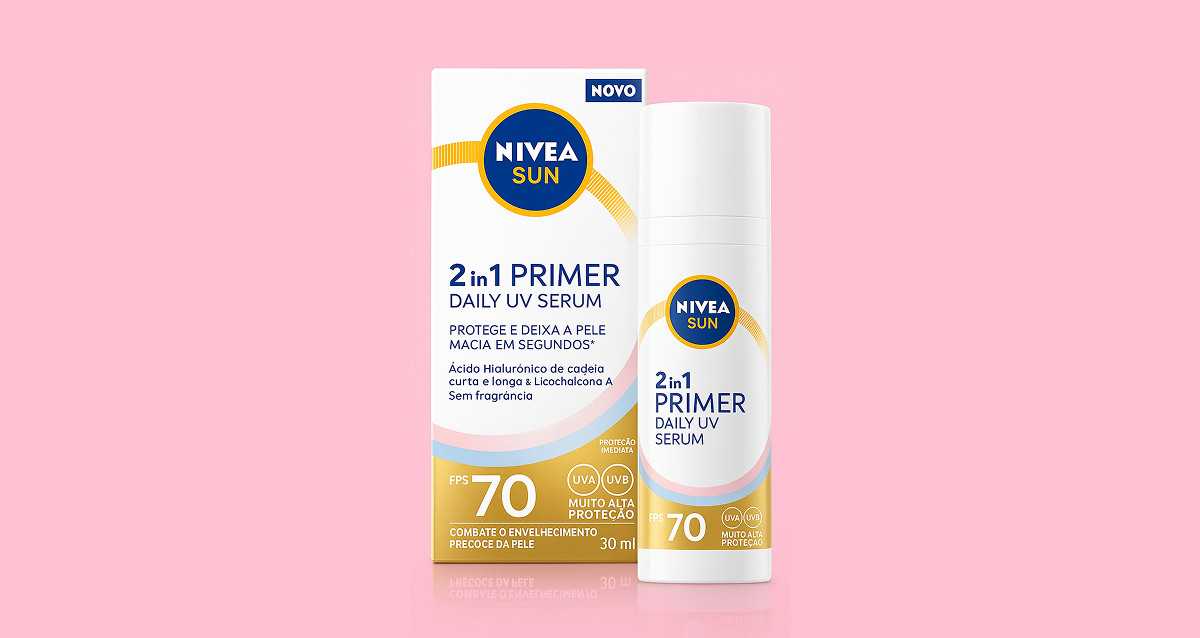 Cuidar da pele diariamente ficou muito mais fácil com o lançamento do Primer Daily UV da NIVEA. Esse produto inovador une duas funções indispensáveis: protetor solar facial FPS 70 e primer para maquiagem. Em segundos, ele garante uma pele protegida, hidratada e com acabamento uniforme, ideal para quem busca praticidade sem abrir mão da beleza.