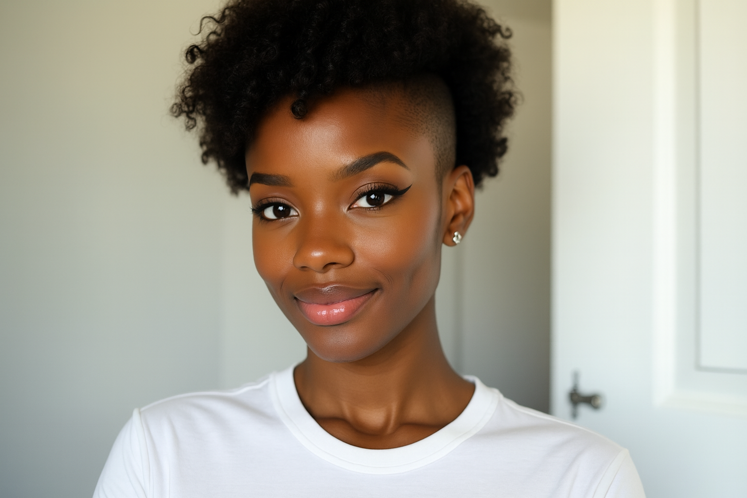 Um dos cortes mais ousados e práticos. As laterais e a nuca ficam mais baixas, enquanto o topo fica volumoso e cheio de estilo. Esse contraste valoriza o rosto e deixa os cachos ainda mais marcantes.